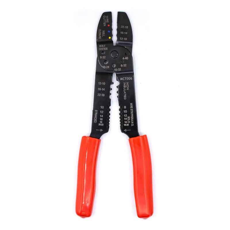 • اندازه کن و قیچی سیم های مفتولی قطر ۶/۲ میلیمتر الی ۳.۵ میلیمتر مربع (۳۲ الی ۸ طبق استاندارد سایزی AWG)