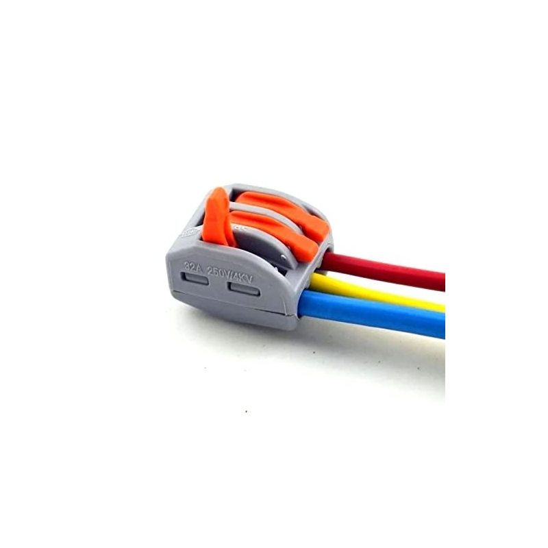 اتصال سه کاناله (کانکتور) PCT-213 یک راهکار ساده و مطمئن برای اتصال سیمها با سطح مقطعهای مختلف از 0.08 تا 2.5 میلیمتر مربع است. این کانکتور با مکانیزم قفل شونده، امکان نصب سریع و بدون نیاز به ابزار خاص را فراهم میکند و برای انواع پروژههای برق ساختمان، تابلو برق و سیستمهای کنترلی مناسب است.