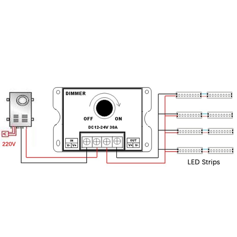 LED Dimmer DC 12V 24V 30A Stepless Adjustable Brightness Lamp Bulb Strip Driver Single Color Light Power Supply Controller
