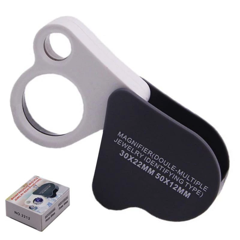 خانه ذره‌بین و میکروسکوپ ذره بین ذره بین جواهرشناسی تاشو دو لنز 30X و 50X بدنه پلاستیک مدل 2212