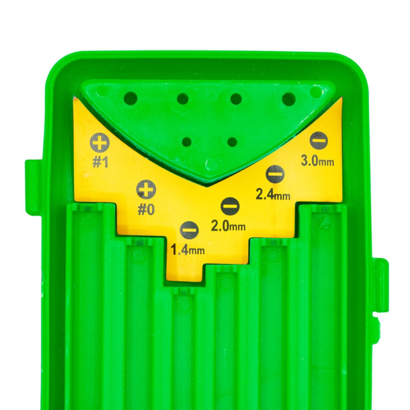 این پیچ گوشتی ساعتی با دسته های فلزی دارای 4 عدد پیچ گوشتی 2 سو  1.4mm و 2mm و 2.4mm و 3.0mm و دو عدد پیچ گوشتی چهار سو 1ph  , 0ph میباشد.
