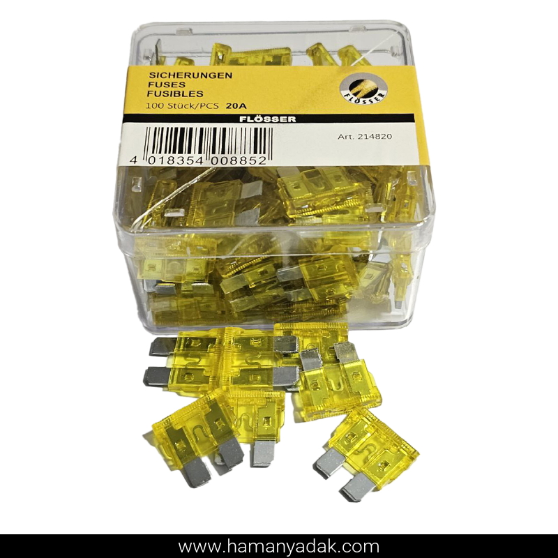 فیوز خودرو دوشاخ 20 آمپر رنگ زرد FLOSSER