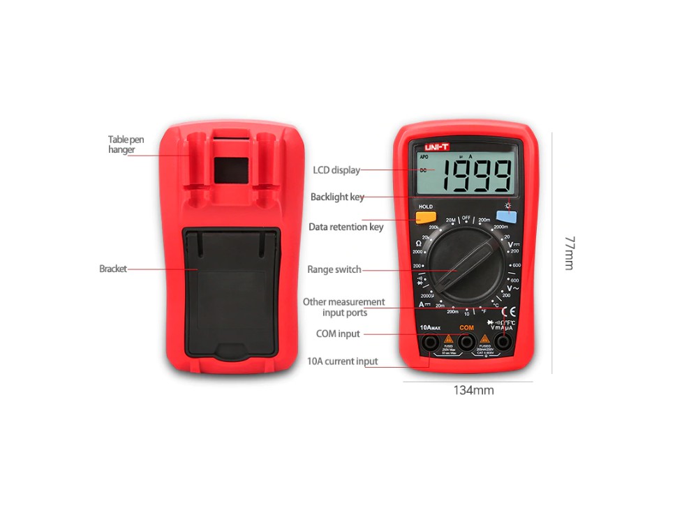 خانه ابزارآلات و تجهیزات مولتی متر و پراب مولتی متر دیجیتال یونیتی UNI-T مدل +UT33C