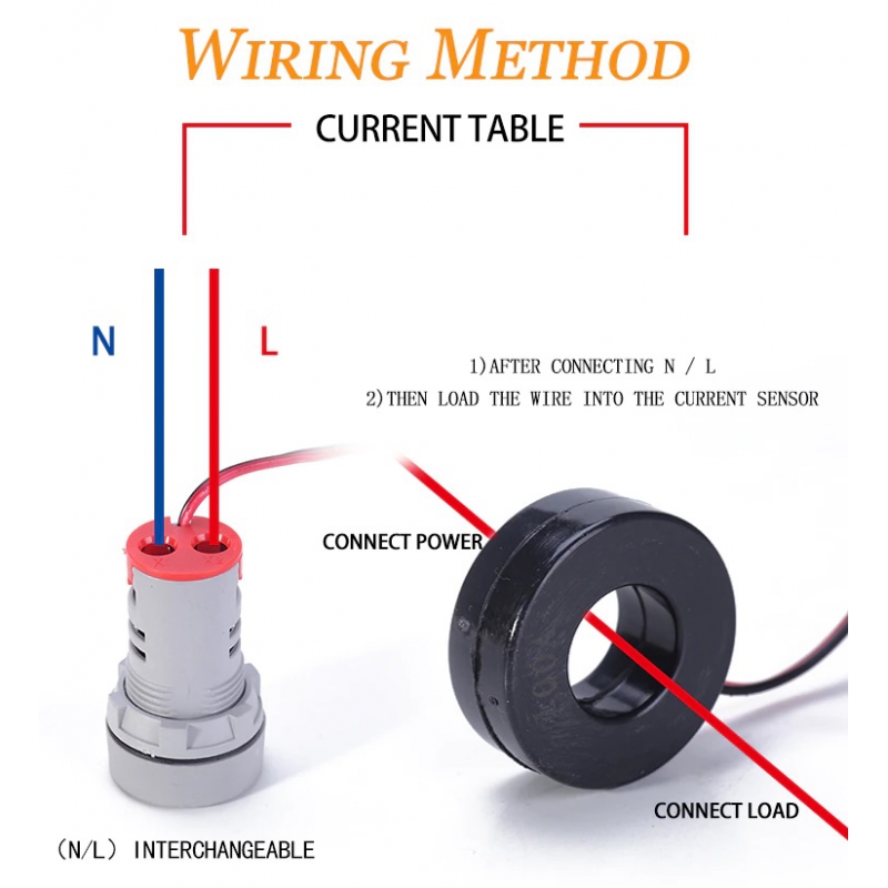 برای روشن کردن ولت آمپر متر چراغ سیگنالی کافیست فاز و نول را به پایه های X1 و X2 بدهید . در این صورت چراغ سیگنال روشن شده و ولتاژ دقیق شبکه تکفاز را به شما نشان می دهد . ولی از آنجاییکه هنوز ترانس جریان  (CT)وارد مدار نشده ، جریان صفر آمپر می باشد . برای اندازه گیری و نشان دادن جریان ، کافیست ترانس جریانرا به بدنه چراغ سیگنال از طریق سوکت وصل کنید . سپس سیم هر فازی را که مایل به اندازه گیری جریان آن هستید از داخل ترانس جریان عبور دهید .