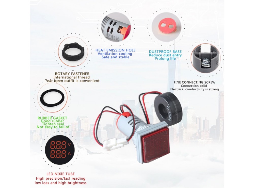 ولتمتر، آمپرمتر و فرکانس متر چراغ سیگنالی AC500V-100A-75Hz مربعی
