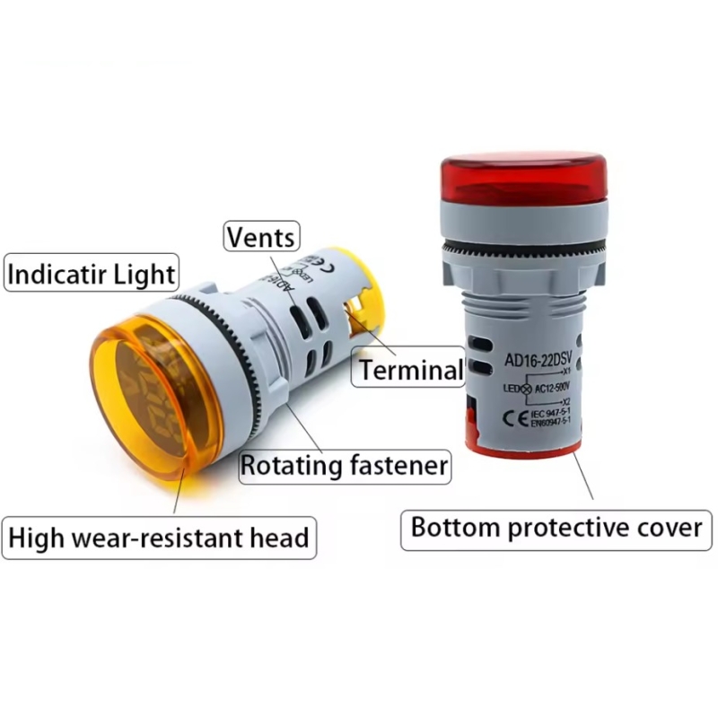 ولتمتر چراغ سیگنالی گرد AC500V لامپ سیگنال یک لامپ نمایشگر جهت نمایش روشن و خاموش بودن موتورهای سه فاز و نشان دادن وجود یا عدم وجود فاز در تابلوهای برق استفاده می شود. این مدل از لامپ سیگنال علاوه بر دارا بودن LED دارای ولت متر و آمپرمتر داخلی نیز می باشد. ولت متر چراغ سیگنالی قابلیت اندازه گیری ولتاژ از 60 تا 500 ولت را دارا میباشد.