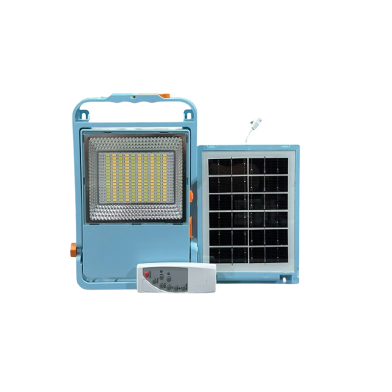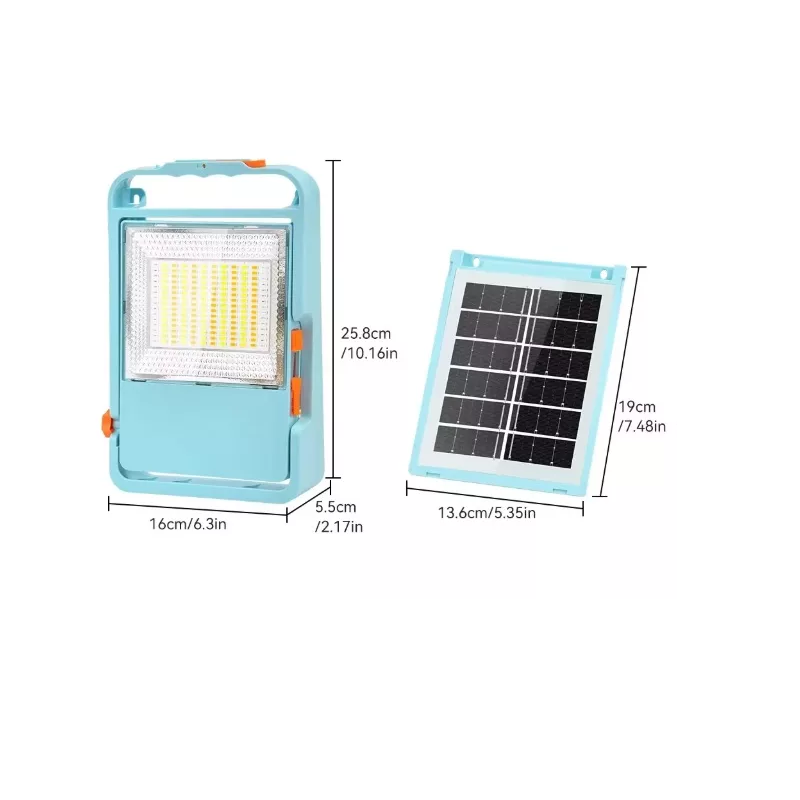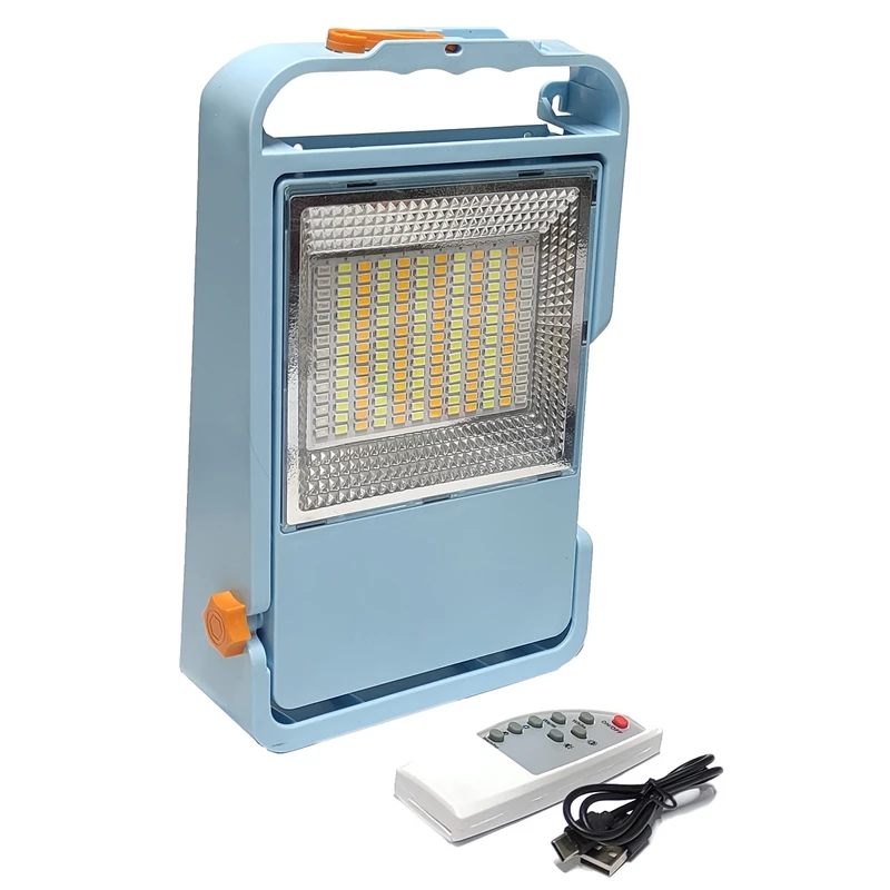 چراغ خورشیدی 150 وات دارای حالت‌های نوردهی آفتابی، مهتابی ، آفتابی و مهتابی پر نور و آفتابی و مهتابی کم نور و چراغ پلیسی آبی و قرمز چشمک زن