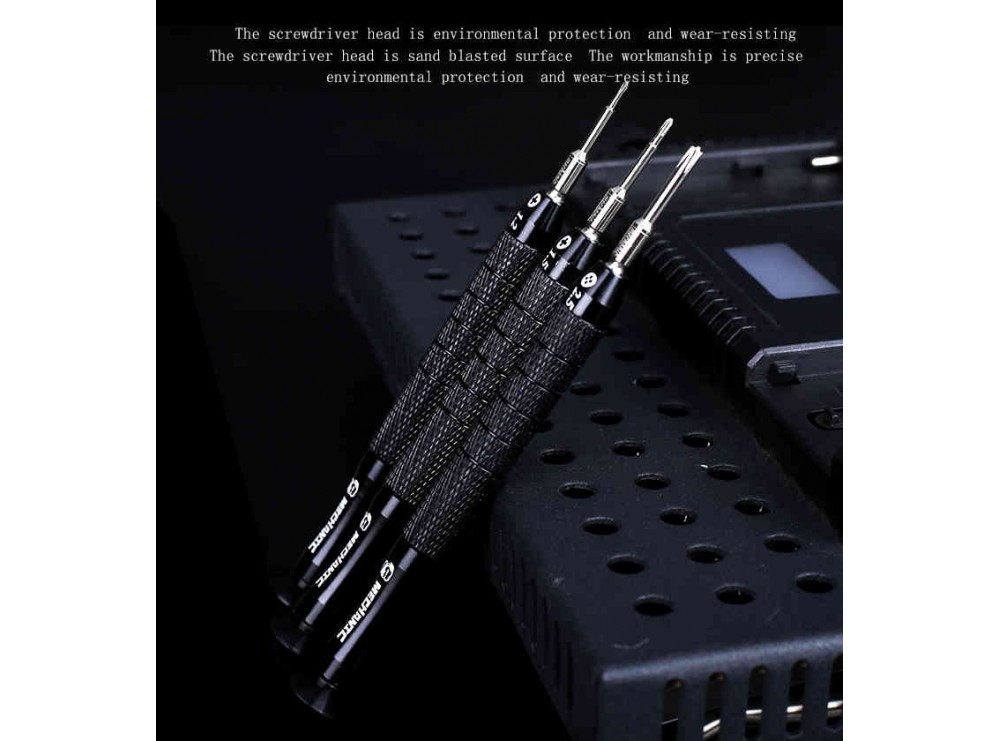 پیچ گوشتی های High Precision مارک مکانیک از با کیفیت ترین پیچ گوشتی های موجود در بازار است. پیچ گوشتی های High Precision برخلاف پیچ گوشتی های معمولی، با سایز سری مخصوص تولید می شوند و برای ساخت سایز های کوچک و خیلی کوچک سری، به صورت دقیق تیز شده اند. کاربرد این پیچ گوشتی ها در تعمیرات موبایل، دوربین، تبلت، کامپیوتر و بقیه لوازم الکترونیک مصرفی است.