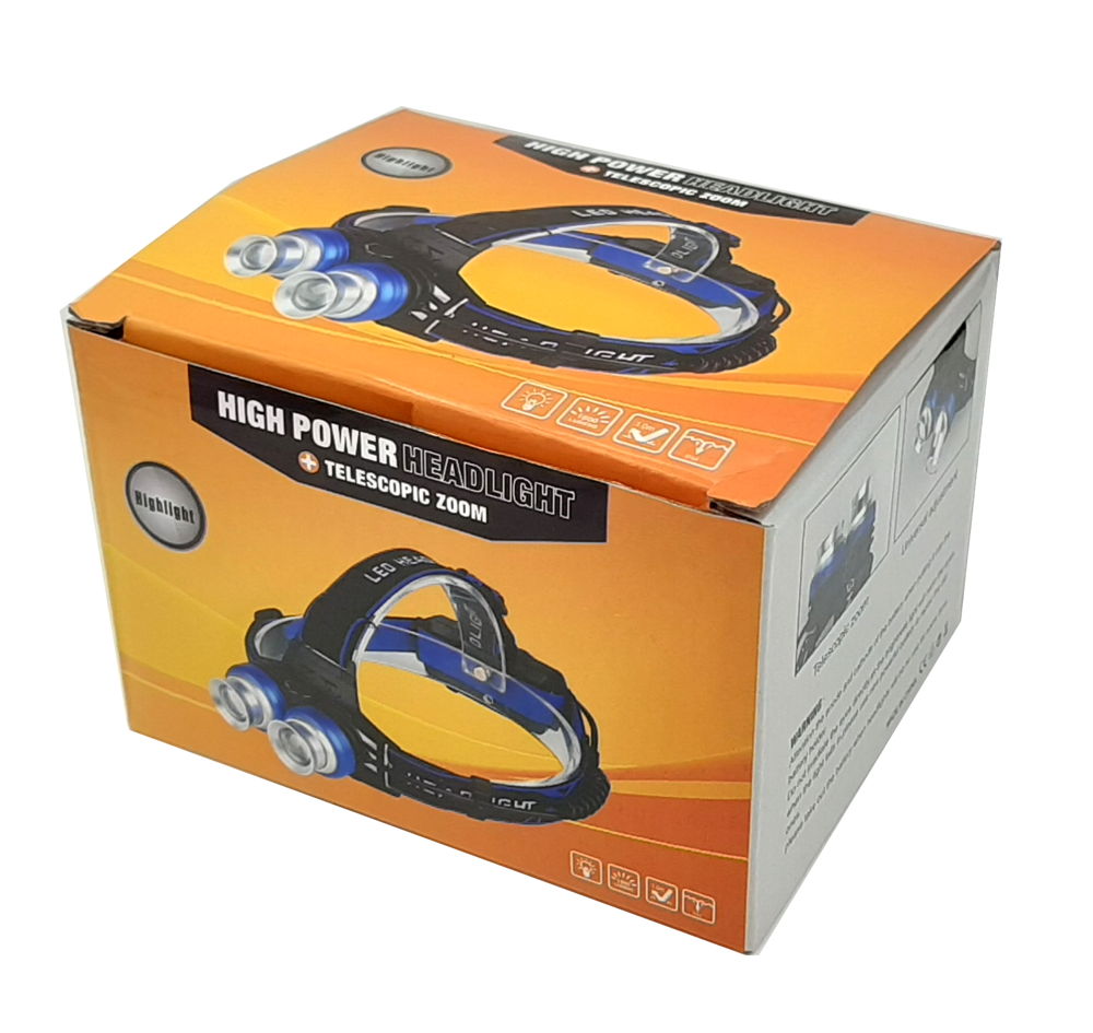 چراغ قوه پیشانی هدلایت شارژی 3 لامپه طلایی