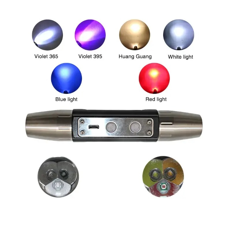 از کیفیت ساخت و تکنولوژی فوق العاده بالایی برخوردار است، که ساخته شده از آلیاژ آلومینیوم بسیار مستحکم، ضد آب و ضد زنگ با وزن 200 گرم می باشد. این چراغ قوه با سر دوتایی و 6 منبع نور (سفید، زرد، بنفش طول موج 365، بنفش طول موج 395 ، قرمز ، آبی ) دارد که می تواند نیازهای جواهرات مختلف را برآورده کند.