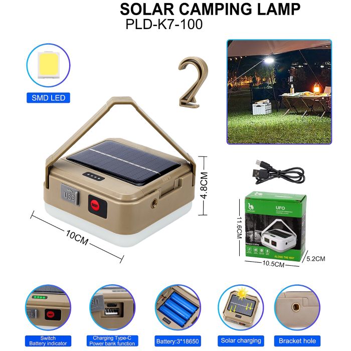 خانه چراغ و روشنایی لامپ ،چراغ USB و شارژی چراغ لامپ آویزی شارژی خورشیدی مربعی UFO مدل DP-K7-100