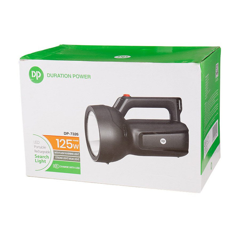 چراغ نورافکن دستی شارژی 125 وات دی پی DP مدل DP-7326 یک وسیله‌ کاربردی مناسب در طول سفر، کوهنوردی، قطعی برق و… وسیله‌ای کاربردی است.