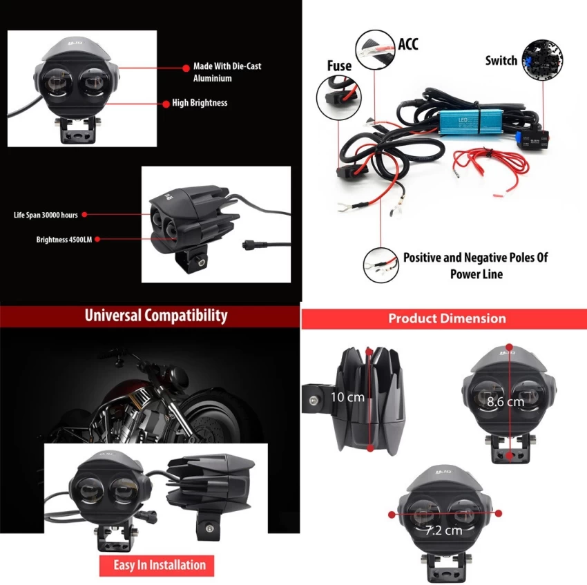 چراغ پروژکتوری موتورسیکلت دو کنتاکت 4 لامپ LiU HJG مدل HGJ-110