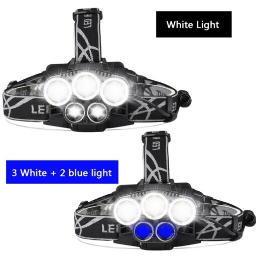 خانه لوازم کوه نوردی و کمپینگ چراغ پیشانی و چراغ قوه چراغ پيشاني شارژي 5 لامپه نور سفيد و آبي مدل ZTY5001