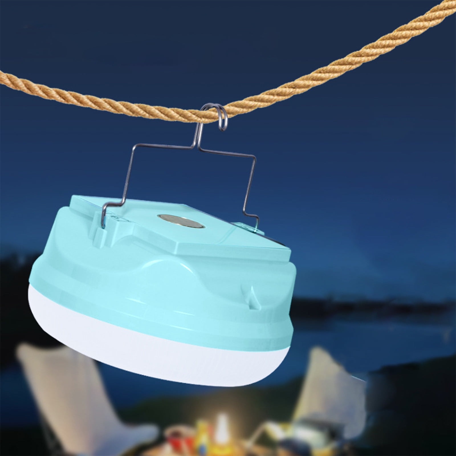 چراغ چادر مسافرتی شارژی در سه حالت پرنور، متوسط و کم نور، نور را به اطراف پخش می کند.