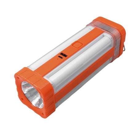 این چراغ یک منبع نور چندمنظوره و قابلحمل است که برای شرایط بیرونی، کمپینگ، قطع برق و سفر طراحی شده است. این چراغ دارای پنل خورشیدی در قسمت بالایی جهت شارژ باتری داخلی در طول روز بوده و از طریق درگاه USB نیز قابل شارژ است. طراحی آن بهصورت استوانهای با دو ردیف LED پرنور انجام شده تا نور یکنواخت و گستردهای در محیط پخش شود. قلاب فلزی مقاوم در قسمت بالایی امکان آویزان کردن چراغ را در چادر، خودرو یا فضای باز فراهم میکند. کلید چندحالته روی بدنه امکان تنظیم شدت نور یا تغییر حالت بین نور سفید، زرد و هشدار قرمز را فراهم میسازد. جنس بدنه از پلاستیک فشردهی مقاوم در برابر ضربه است و بهدلیل وزن سبک و طراحی ارگونومیک، حمل آن بسیار آسان است.