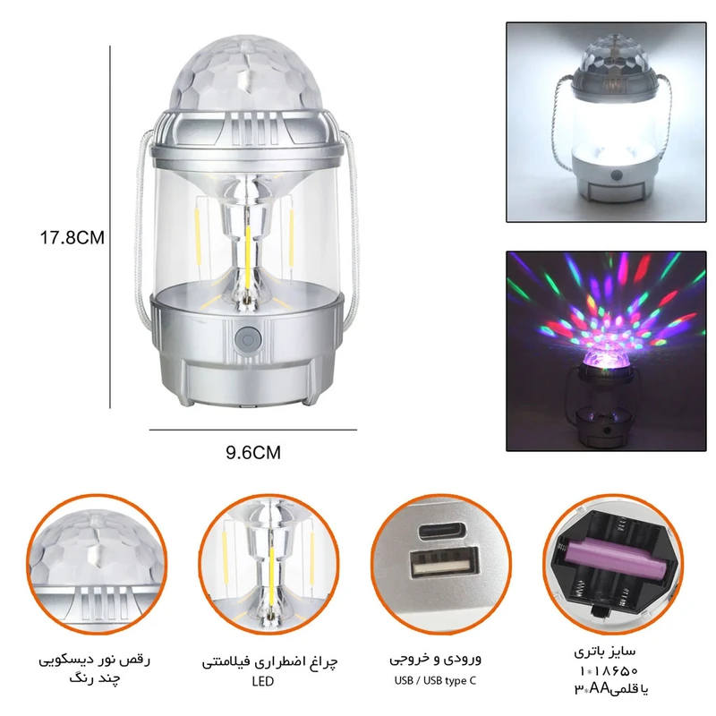 چراغ کمپینگ رقص نور فانوسی شارژی چندکاره مدل 978