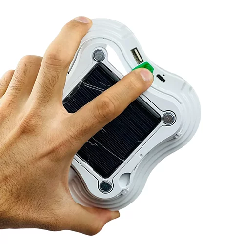 • میتوانید چراغ را به پانل خورشیدی را برای شارژ اضطراری متصل کنید.