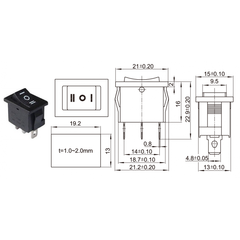 خانه قطعات و تجهیزات الکترونیکی کلید راکر سه حالته سه پین 19X12X16mm