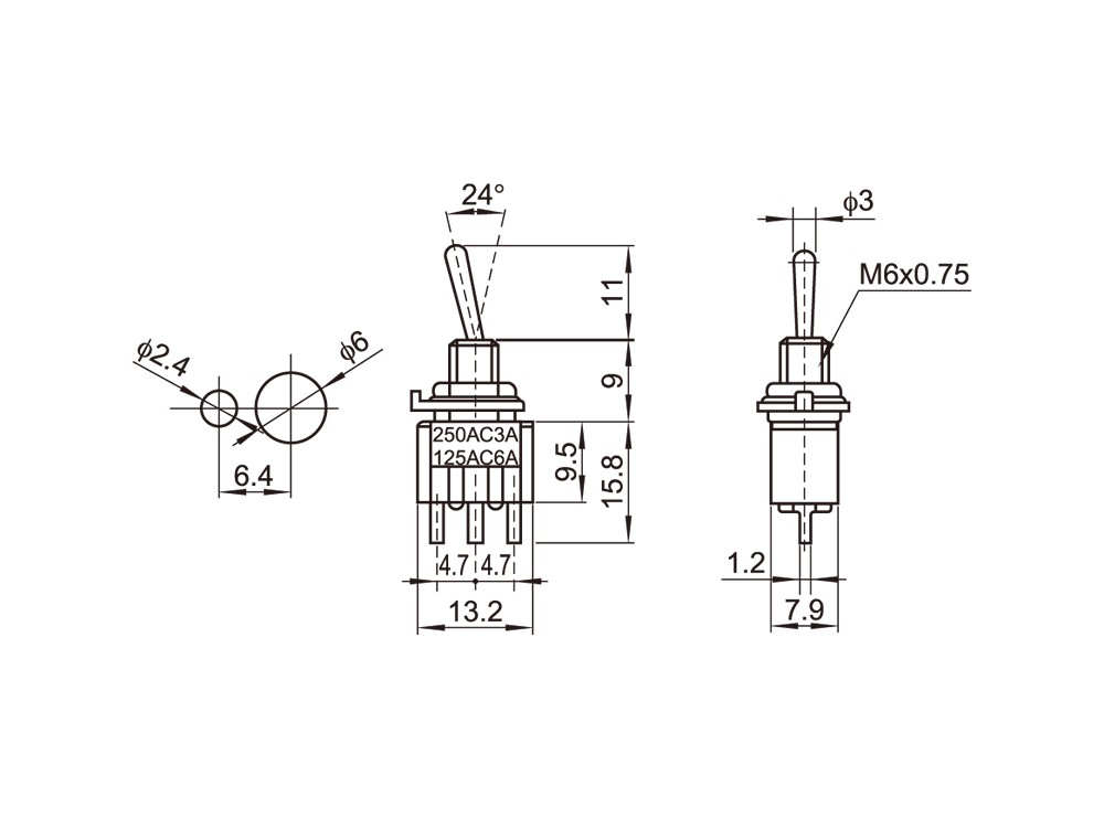 خانه قطعات و تجهیزات الکترونیکی سوکت، مبدل و فیش کلید کلنگی 3 حالته 3 پایه